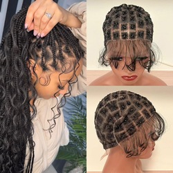 Siyah kadınlar için toptan yeni sentetik tam dantel tutkalsız örgüler 36 inç örgü saç dağınık kutu örgüler peruk