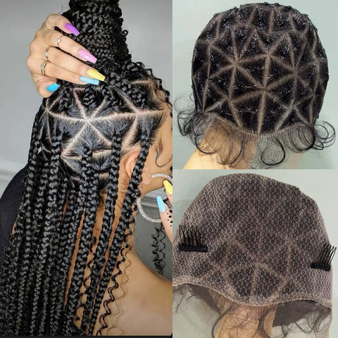 Örgülü peruk kap bebek saç Locs tığ peruk kap örgü saç tutkalsız çift tam Hd dantel peruk siyah kadınlar için kapaklar